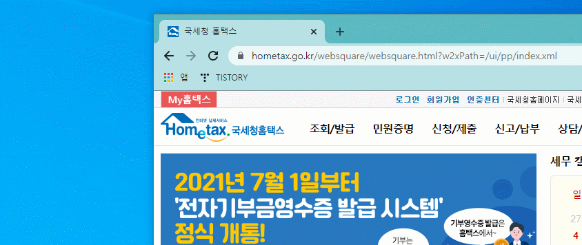 더블클릭을 하면 아래처럼 국세청홈택스 홈페이지가 바로 열립니다.